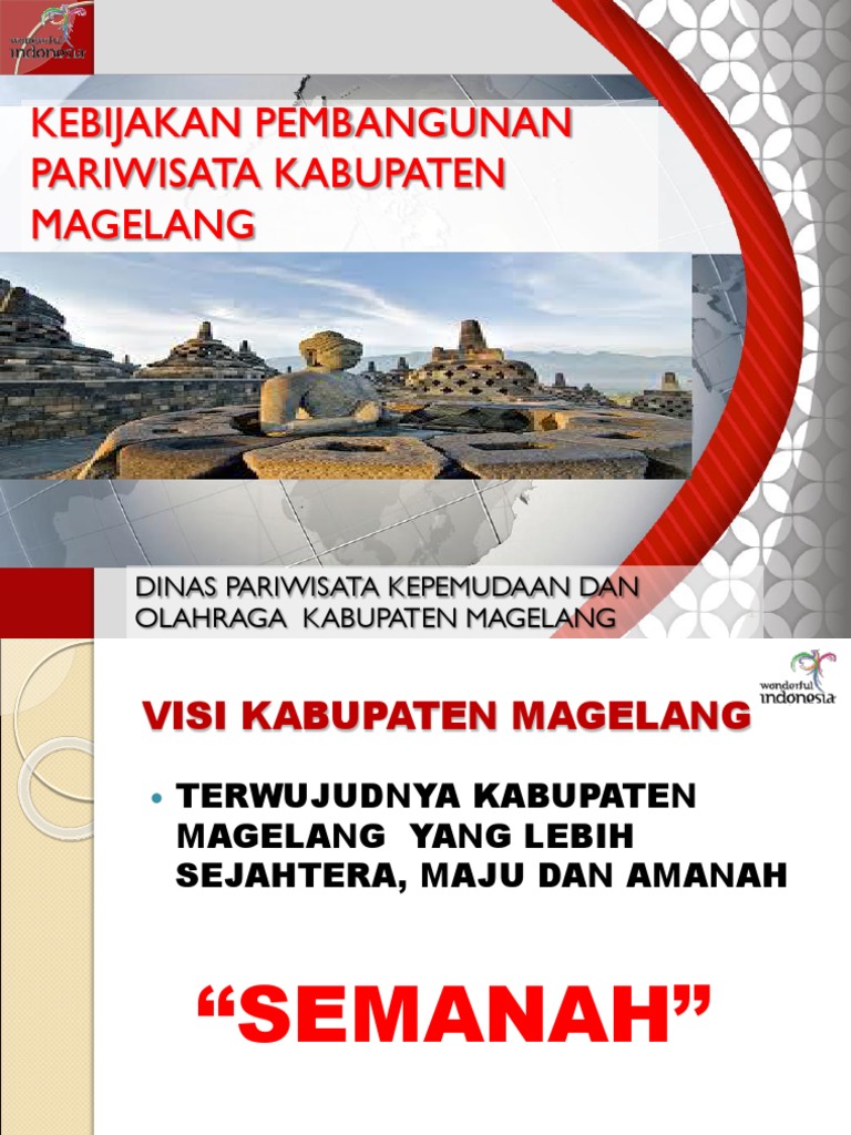 .dinas pariwisata, pemuda dan olahraga (disparpora) kabupaten magelang, saat acara temu media di mesastila resort and spa, magelang efek domino yang dihadirkan candi borobudur membawa angin segar bagi pariwisata magelang. Последние твиты от dinas pariwisata kabupaten pandeglang (@dispar_kab_pdg). Candi borobudur bisa menjadi ekowisata, karena kaya akan pengetahuan. Dinas ini bertugas dan bertanggung jawab terhadap segala hal terkait kebudayaan dan kepariwisataan di wilayah jakarta dan kepulauan. Admin mau tanya dong, apa sih saran wargi pandeglang untuk dinas pariwisata kabupaten pandeglang agar kinerjanya lebih baik lagi ???